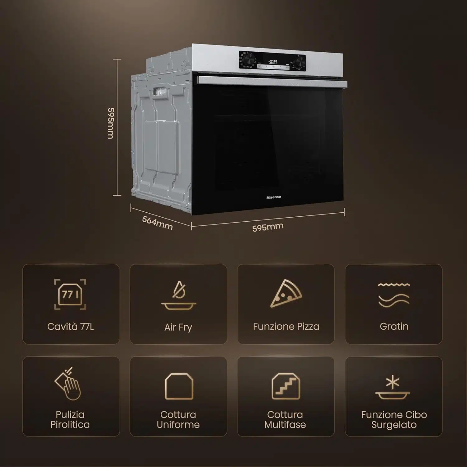 Hisense BI64213E4PX, Forno Multifunzione Termoventilato, Cavità XXL 77L