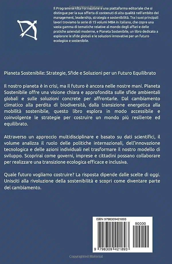 Se ti interessa capire come le politiche globali, l’innovazione tecnologica e le scelte quotidiane possano trasformare il nostro futuro, “Pianeta Sostenibile” è una lettura imprescindibile, un libro perfetto per chi vuole informarsi, agire e diventare parte della soluzione.