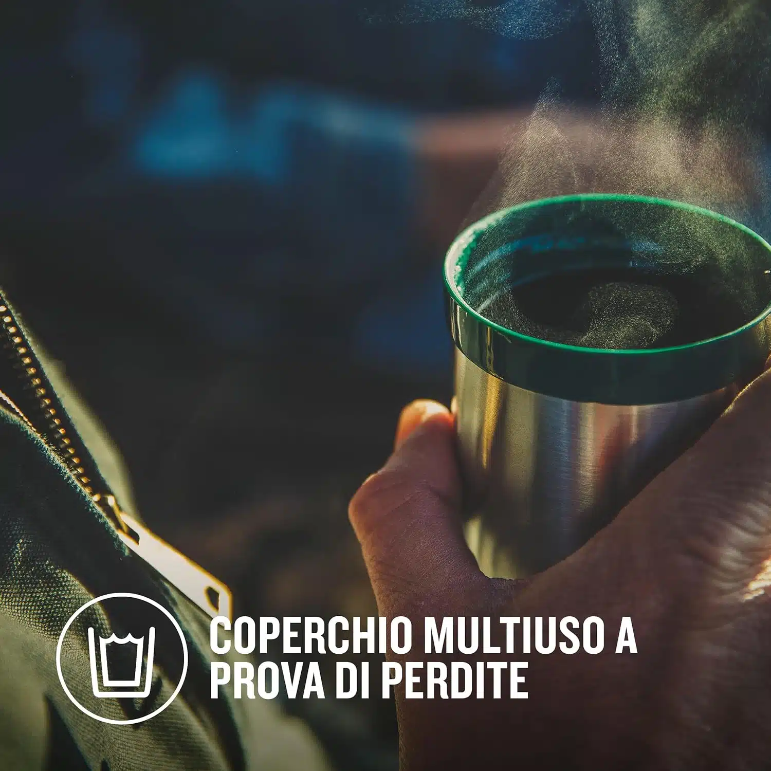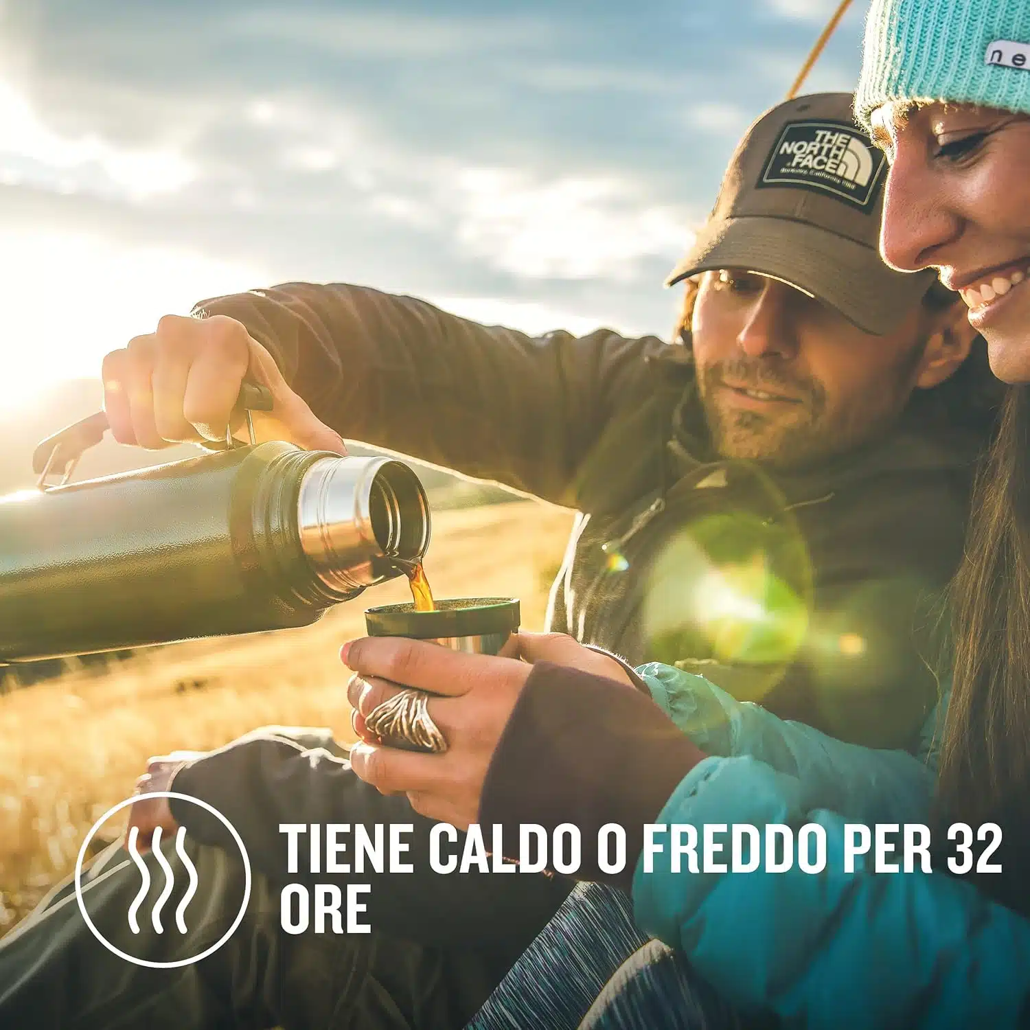 Riempite la borraccia termica da 1 litro con acqua, caffè, tè o altre bevande, a casa, al lavoro o all’aperto. L’isolamento sottovuoto a doppia parete di questo thermos mantiene tutte le bevande calde o fredde per 24 ore e fredde per 120 ore con il ghiaccio.