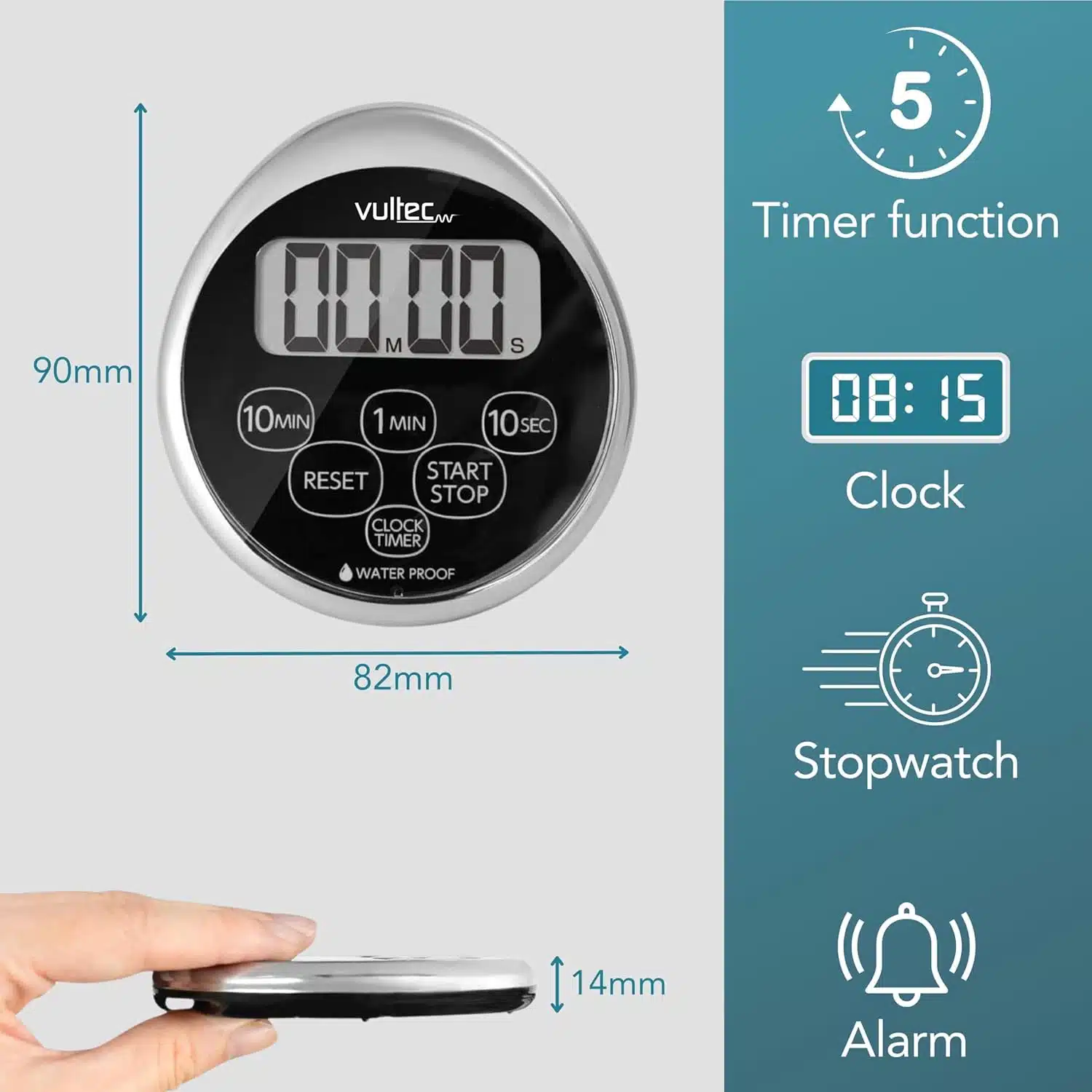 - SEMPLICE CONTROLLO – I pulsanti organizzati consentono di impostare ogni orario desiderato. Quando il tempo è scaduto, senti un chiaro allarme.